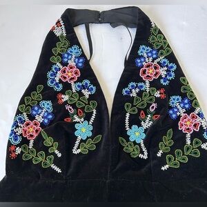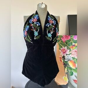 GLAMOROUS VELVET PLUNGE HALTER ROMPER, BEADED EMBELLISHMENT. GORGEOUS SZ.L