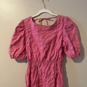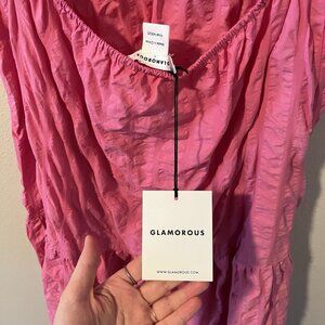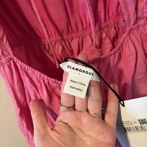 GLAMOROUS dress Hot Pink Tiered Preppy Open Back Cottagecore Preppy Bright Puff