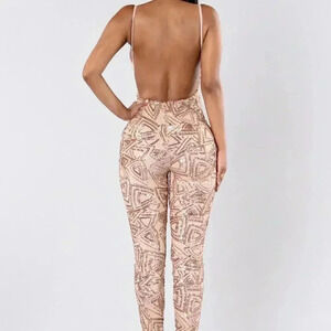 GLAMOUR GIRL BLACK NUDE SEQUIN JUMPSUIT