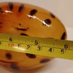 Very Beautiful Statement Purse. There are no labels or stickers to indicate brand or maker. Please view the pictures carefully for details, colors, measurements, brand (if applicable) and condition. This will come carefully packaged for shipping. Comes from a smoke free, animal free environment. This is pre-owned. No issues, cracks, chiggers or crazing. Just a very pretty pre owned hand blown glass purse. Please understand that we do no accept returns. Please view the pictures, ask question