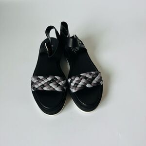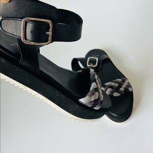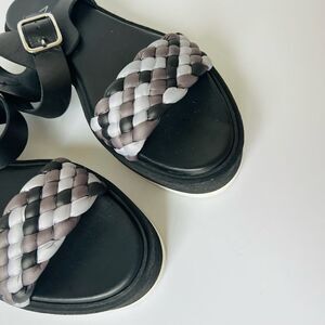 Braided toe straps elevate a timeless platform sandal with eye-catching texture and color.
