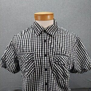 GLB Gold Label Brand Short Sleeve Black White Plaid Button Up Mens 2XL