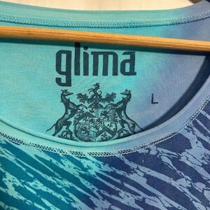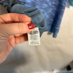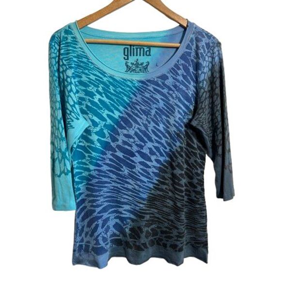 GLIMA Top Womens L Blue Zebra Animal Print 3/4 Sleeve 100% Cotton Scoop Neck