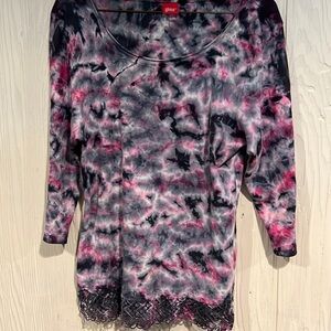 GLIMA made in USA TOP WITH CROCHET EDGES AT BOTTOM 3/4 sleeves