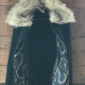 Stylish and chic lightweight jacket. Collar and front are lined with chain print. Jacket has a belt that compliments the form fit. Belt is accented with a beautiful hardware buckle. EUC the only flaw i am aware of is that each front pocket is caught in the lining.. I chose to let the new owner detach! PRIVATE OFFERS welcome on bundles! Thank you for visiting my closetππ@Krickette27π