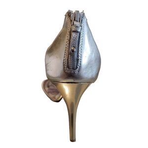 GLINT Bling Silver Pump Heels Crystal Zipper Back Open Toe 7M Dance Prom