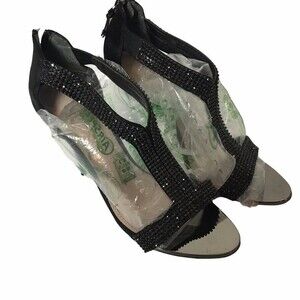 GLINT Devyn Black Rhinestoned Stiletto Heels Size 7.5