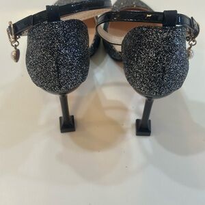 GLITTER - Black Glitter Women's 3 1/2”L Heels with Ankle Strap Size 7 NWOT
