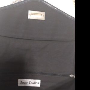 CUTE STRAW/GLITTERY BLACK AND NATURAL PURSE WITH CHAIN STRAP- STRAP IS NOT TOO LONG