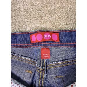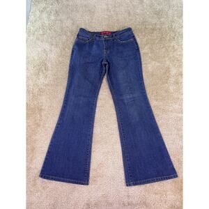 GLO Jeans Junior's Dark Wash Stretchy Flare Leg Size 7 Mid Rise Vintage Y2K E359