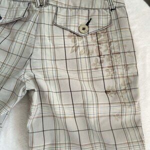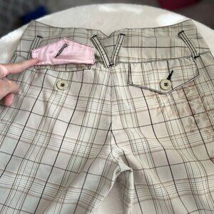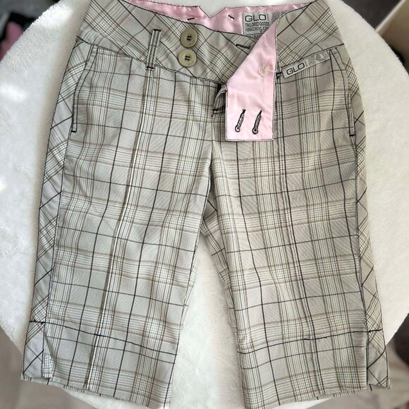 ☆ Women's Gently Worn, GLO Tailored Goods Beige Bermuda Shorts (Series G-5700) with a Floral Print and the Pink Satin Accents do these shorts justice! These are so comfortable & nice quality material. They have Pink Satin Pockets and inside trim with an adorable floral print on the right side of the leg