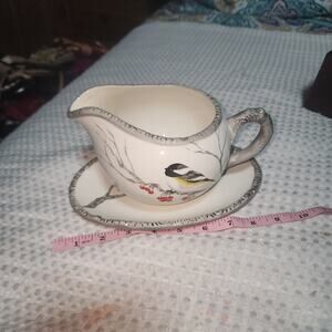 GLOBAL DESIGN CONNECTIONS EUC WINTER CHICADEE GRAVY BOAT & PLATE SET