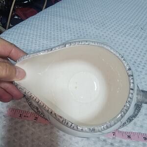 This Attractive Chick Designed Cream Ceramic Gravy Boat with Saucer is a charming and versatile serving dish, perfect for a variety of foods. Measuring approximately 9 x 6 inches for the saucer and 6 inches in diameter by 4 inches high for the gravy boat, it adds a delightful touch to any kitchen or tabletop. Ideal as a housewarming gift, this unique piece is sure to impress your guests.