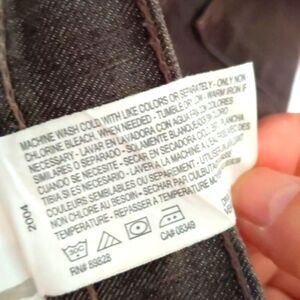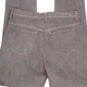 These classy straight leg pre-owned jeans are in excellent condition. They are creased on front and back, and have no obvious flaws. There is an attached tag on inside waist (maybe from dry cleaner).