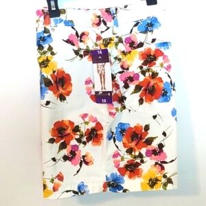 GLORIA VANDERBILT DREAM GARDEN Vintage White Floral High-Rise Amanda Shorts Size 14 NWT