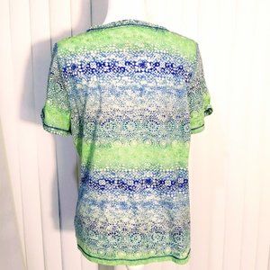 GLORIA VANDERBILT*SHORT SLEEVE TOP*BLUES & GREENS*WOMEN SIZE L*NWOT.