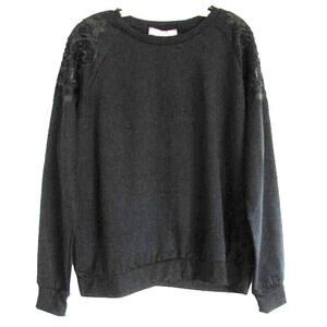 GLORIA VANDERBUILT Black Lace Detail on L/S Sweatshirt Sz XL