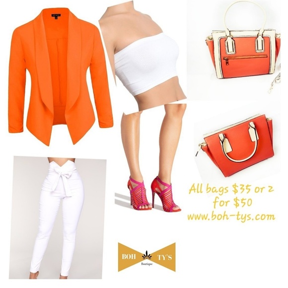 Orange and Cream large bag with front and back zip pocket. Comes with shoulder strap. Has gold and black accents.