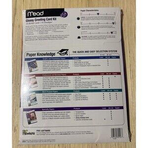 The GLOSSY GREETING Card Kit by Mead includes 10 bifold cards and envelopes, each measuring 8.5 x 11 inches. This kit is perfect for sending stylish and professional-looking greetings, with the convenience of having everything you need in one package. Made in the United States, this kit is ideal for personal or business use, and the glossy finish adds a touch of elegance to your messages. Whether you're looking to send congratulations, thank yous, or just a friendly hello, this card kit has you covered.