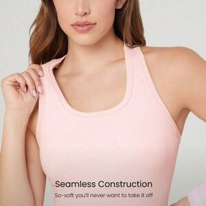 GLOWMODE Seamless Resilient U-Neck Racerback Hip Length Ribbed Active Tank Top Daily Casual Wear Removable Cups