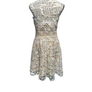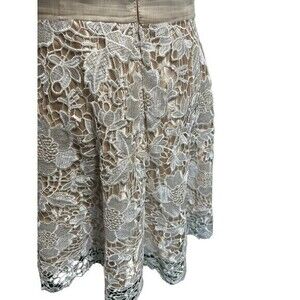 GLS Apparel Women’s Size Medium Formal Short Strapless Lacy Gold Ivory EUC