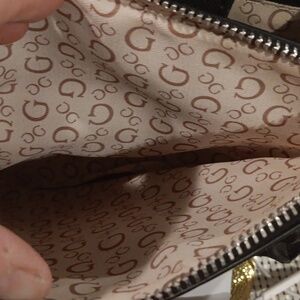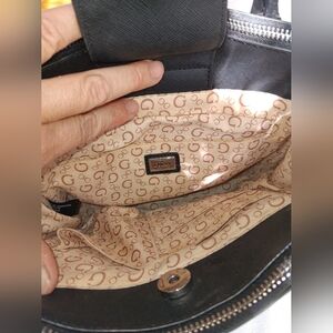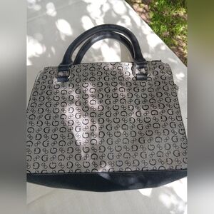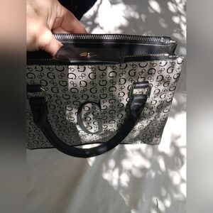 Stylish handbag featuring a distinctive G-logo pattern. Perfect for any occasion, this black and gray bag adds a touch of elegance to your outfit.