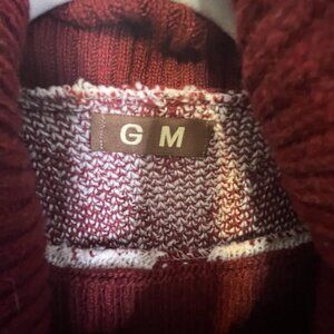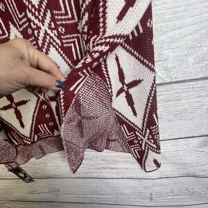 The GM Aztec Print Poncho Sweater is a stylish and versatile piece for women, perfect for casual occasions in the winter and fall seasons. This cowl neck sweater features a geometric Aztec pattern, tight-knit construction, and a relaxed fit. Made from a blend of viscose and acrylic, this sleeveless sweater with a red color adds a touch of hippie and cowgirl flair to any outfit. Easy to care for with machine washable instructions, this one size poncho sweater from GM is a unique and trendy addition to any wardrobe.
