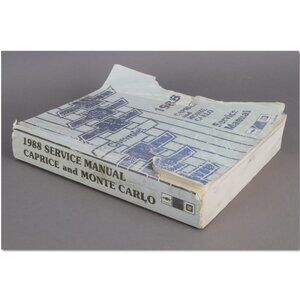 GM CHEVROLET 1988 Caprice and Monte Carlo Service Manual ST-329-88 Paperback. This manual is complete. No missing pages. No loose pages. It does not smell moldy. I purchased this manual new in 1989 directly from Helm. No pen or pencil marks on the pages. The front cover is in poor condition as it is torn and faded. There are minor grease stains on some pages. This comes from a smoke free, pet free home.