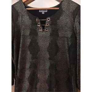 GM Collections Metallic Black Gold Formal Blouse Top M | Evening Party Tunic