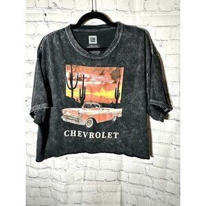 GM OFFICIAL BRAND LADIES CHEVROLET DARK GRAY SHORT SLEEVE CROPPED TOP (XL) EUC G