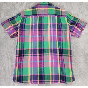 G&M Shirt Mens Large Multicolor Plaid Casual Preppy Button Up Short Sleeve