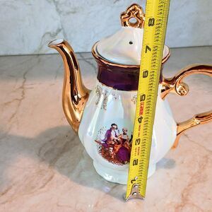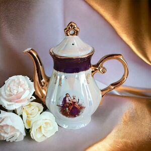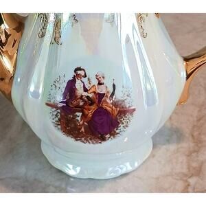 GNA Fine Porcelain 8.5" Tea Pot GOLD Hand Painted Victorian Courtship Iridescent