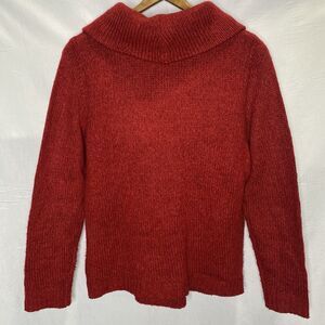 GNU Sweater Cable Knit Cowl Neck Long Sleeve Pockets Acrylic Womens M Red