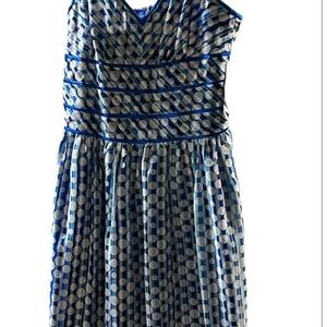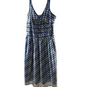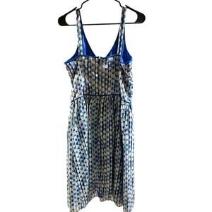 GNW sundress features a sleeveless design with a scoop neckline, perfect for casual or cocktail occasions. The dress showcases a beautiful blue and white color scheme, creating a fresh and vibrant look. Its midi length and light, airy fabric make it an ideal choice for warm weather outings.