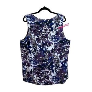 GNW Floral Watercolor Pleated Tank Women's Plus Size 2X Purple Blue Pleated Neck