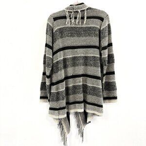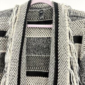 GNW Fringed Knit Cardigan Women Large Draped Waterfall Front Knee Length Black