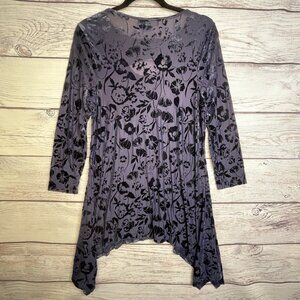 GNW Top Blue Sz M Velvet Burnout Fairy Grunge Whimsigoth Cutout Asymmetrical