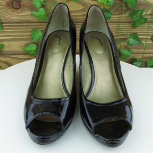 Up For Sale - GNW Women Peep Toe Heel Shoes Molly Black Synthetic Size 8.5 Medium (B, M)