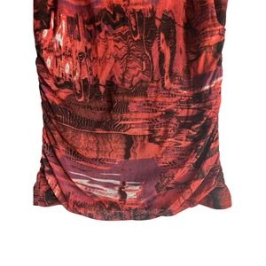 GNW Women’s Size Medium Y2K Square Neck Mesh Artzy Print Blouse Top