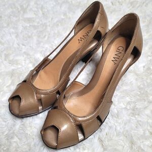 GNW Peep Toe Champaign Taupe Chunky Heels