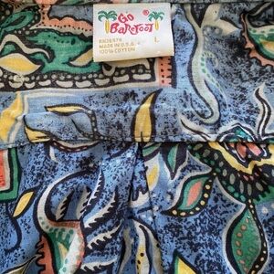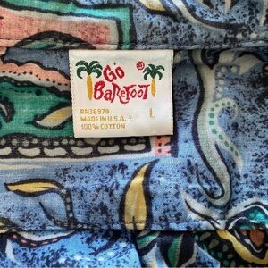 GO BAREFOOT Reverse Print Blue Hawaii Aloha Hawaiian Shirt Men L Large