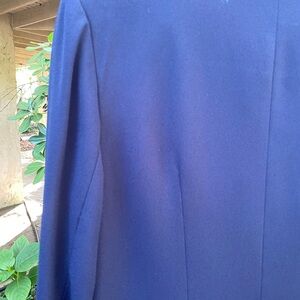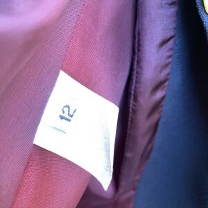 Elegant navy blazer with a sleek design. Features a rich burgundy lining. Perfect for formal occasions.