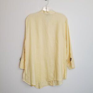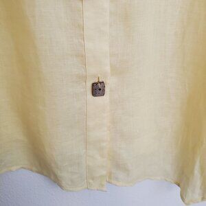 GO Silk buttercream yellow linen Mandarin collar blouse