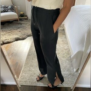 GO> by Go Silk Black Washable Silk Pants. Size small. Elastic waist with drawstring. Pockets. Split at side of calf and ankle. Black color. Very good condition.