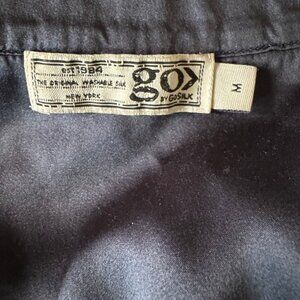 GO by Go Silk Navy Blue Washable V Neck Distressed Sleeveless Blouse Sz M