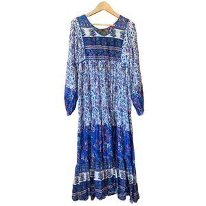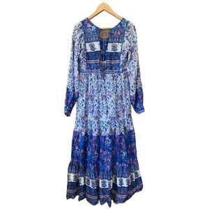 GOA Boho Long Sleeve Cotton Tiered Maxi Dress Blue Size M