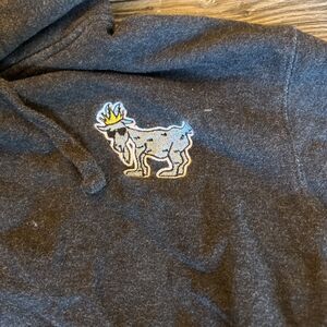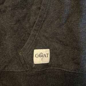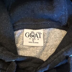 GOAT USA Hoody Sweatshirt Mens Large Black Pullover Cut V Neck Distressed Patch