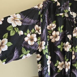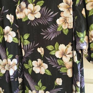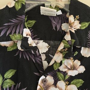 GO BAREFOOT Hibiscus and Monstera Leaf Vintage Black/White/Green Shirt, EUC, M
