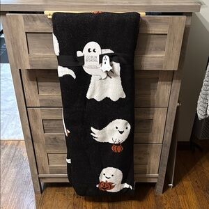 GOBLIN & GHOUL BLACK GHOST PUMPKIN JACK O LANTERN OVERSIZED HALLOWEEN THROW NWT