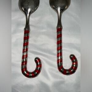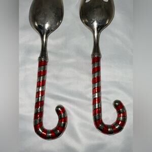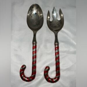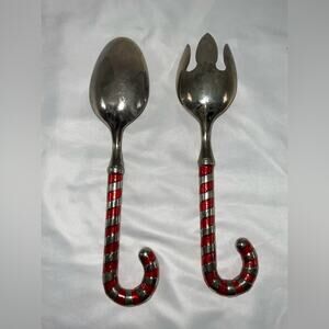 GODINGER CANDY CANE SERVING UTENSILS FORK SPOON SET SILVER TONE RED CHRISTMAS